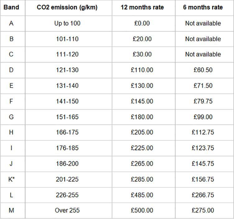 Below is the standard tax table for cars registered on or after 1st March 2001.