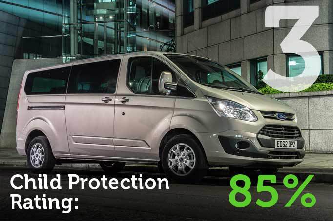 The Ford Tourneo Connect is the largest car on our list and has a surprisingly good safety rating. Child protection at 85%, adult protection at 94%.